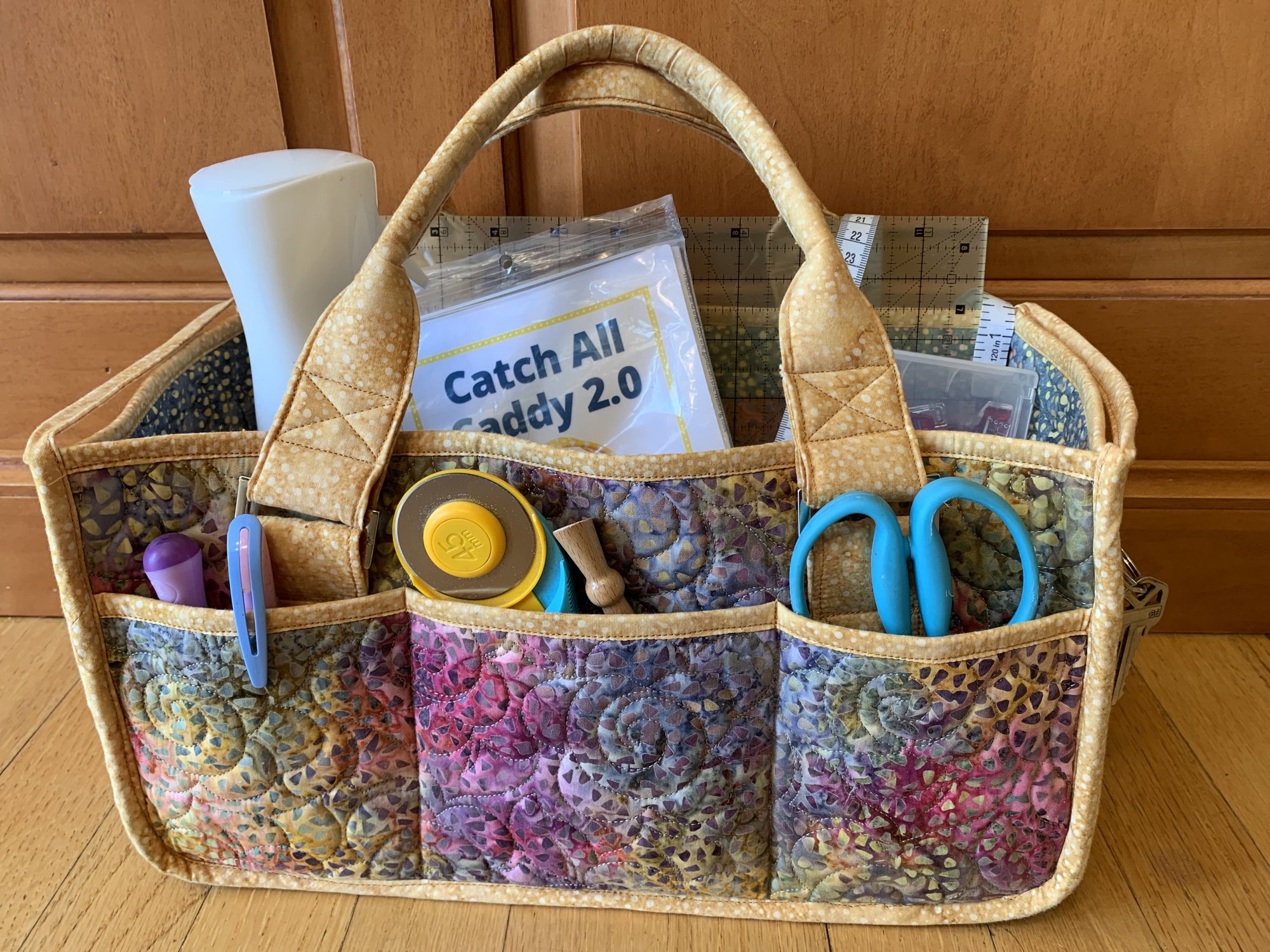 This bag is perfect for organizing and carrying all your supplies. It’s sturdy and portable with interior dividers and lots of exterior pockets. You can use it to carry sewing supplies to class, hold necessities for a road trip (such as snacks, drinks, reading book, etc.) or fill it with baby supplies and give it as a great baby shower gift.